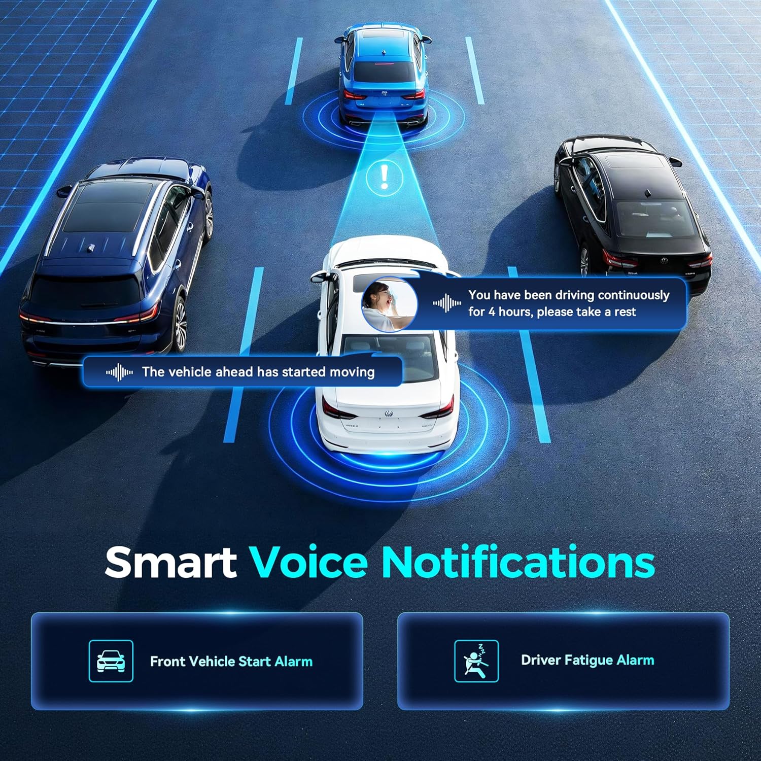 • ADAS: The N5 Dual is equipped with ADAS that can intelligently provide voice alerts for front vehicle start-up and fatigue driving (after you have been driving continuously for four hours). ADAS enhances your driving experience and safety. Both alerts can be independently toggled on or off in the app.